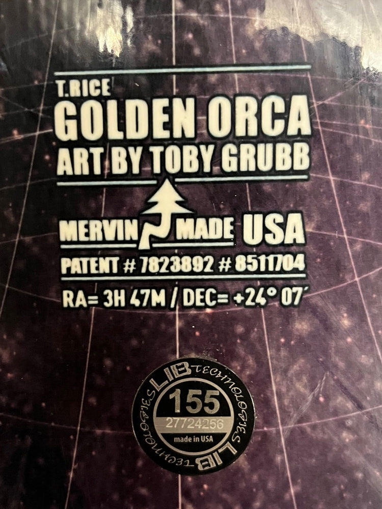 Lib Tech Golden Orca 155 used snowboard in good condition There are some light marks on the top sheet and where the bindings have been attached from normal use