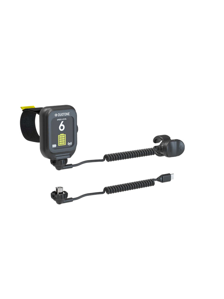 The Foil Assist Remote - a waterproof smartwatch-style controller with a finger ring - keeps your hands free, making it easier to push up on the board, paddle, duck dive, carve or handle a wing. Activate the motor with a double-click on the + button, and control the speed by pressing and holding either the + or - button.