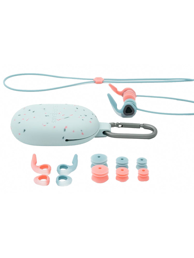 • 1 pair of SurfEars earplugs, pre-mounted with size L wings and M gels, and a detachable leash.