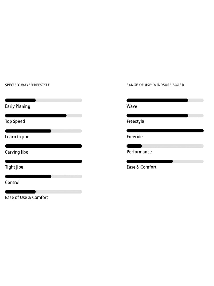 It has been said before and has to be pointed out again: The Freestyle Wave concept is the ideal option for 99% of coastal-sailing recreational windsurfers. The Freestyle Wave offers so many tuning options that it can be set up perfectly for any given day, no matter what the conditions. It’s an ideal all-round high wind board for both, blasting and bump & jump sailing. It also shines as a powerful, all-round wave board for lighter winds, heavier sailors or difficult conditions and is great fun especially for huge jumps and fast carves in side to side onshore conditions.