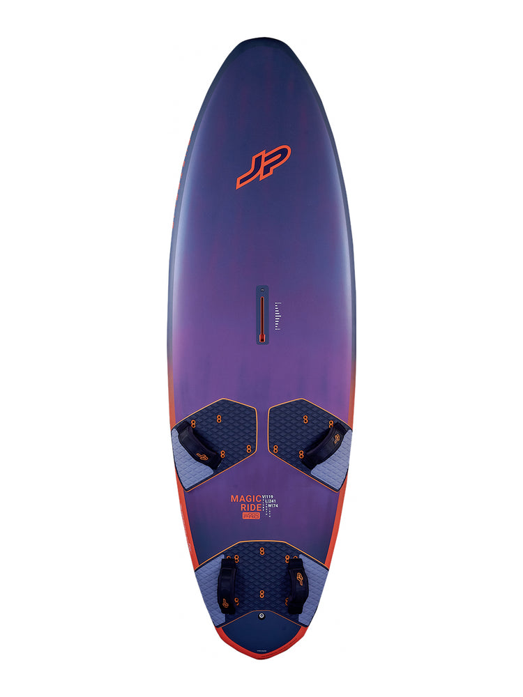 At the same time its rail bite and its reliability when carving steady arcs will encourage the more advanced rider to push harder and corner with full dedication: Tighter and tighter turns, classic freestyle like duck jibes and carving 360s will be the name of the game. The Magic Ride can be quoted a bigger Freestyle Wave and is the most playful and forgiving of JP’s manoeuvre freeride boards.