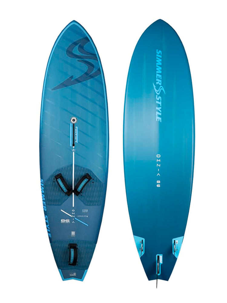 In a single-fin setup, the Omnia transforms into an ultra-fast and stable freewave board, maximizing early planing, upwind capability, and straight-line speed. Its curvy outline and sleek hull design deliver outstanding jibing performance and agile turning, making it equally capable when transitioning into wave riding.