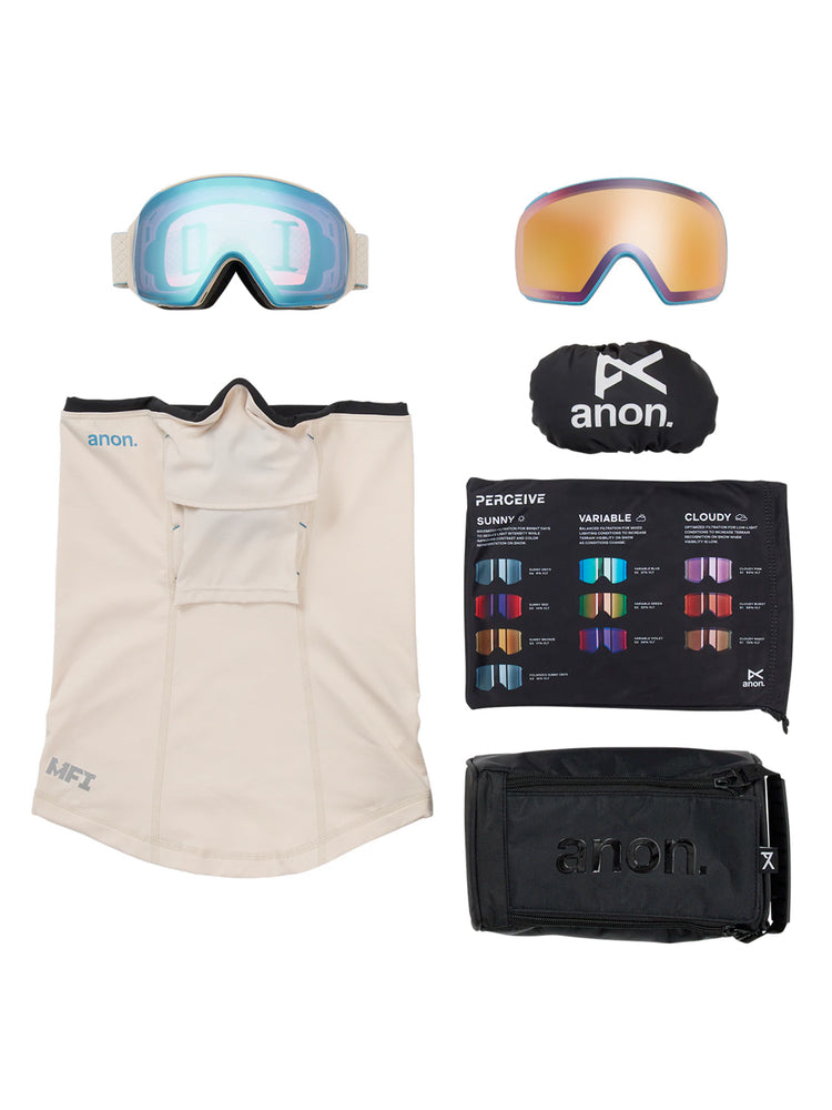The Anon M4 Toric Goggles offer a precise helmet-to-goggle fit with the wide field of view and enhanced peripheral vision of a toric lens. Our innovative Magna-Tech® quick lens-change technology uses powerful rare earth N52 magnets to make lens changes easier than ever. The M4 offers the unprecedented versatility to switch between toric and cylindrical style lenses. This edition of the M4 includes two toric lenses featuring Perceive optics for high-contrast, terrain-defining clarity and our best anti-fog treatment for crystal clear vision through a wide range of conditions. Magnetic Face Mask Integration (MFI®) provides seamless face mask attachment, and full-perimeter vents maintain consistent airflow for fog-free clarity. Includes an MFI face mask, a Magna-Tech goggles storage case, and a goggles sock protector.