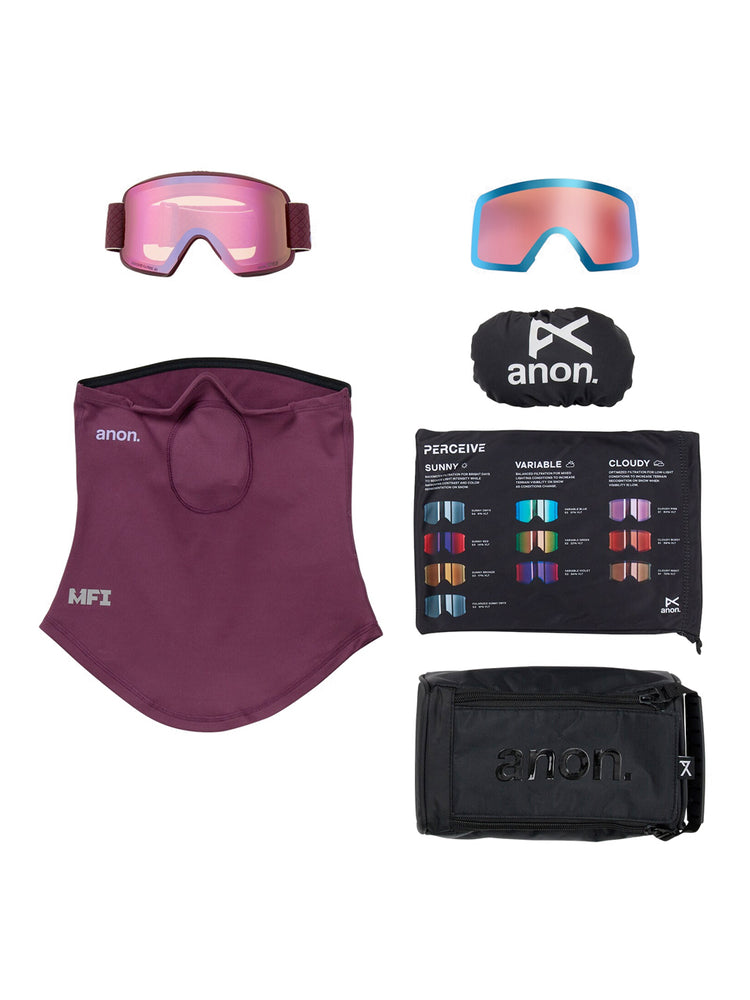 The Anon M6S Goggles feature the same high-end performance as the M6 Goggles in a frame scaled for medium and small faces. They offer a precise helmet-to-goggle fit with the wide field of view and low-profile design of a cylindrical lens. Our innovative Magna-Tech® quick lens-change technology uses powerful rare earth N52 magnets to make lens changes easier than ever. Perceive optics offer high-contrast, terrain-defining clarity. They feature our best anti-fog treatment for crystal-clear vision in a wide range of conditions. Full-perimeter venting plus moisture-wicking, ramped face foam creates a comfortable, form-fitting seal that supports fog-free clarity to anticipate every turn. Magnetic Face Mask Integration (MFI®) provides seamless face mask attachment. Includes a bonus Perceive lens so you're prepared for all conditions, plus an MFI face mask, microfiber goggle bag, and lens compression case.