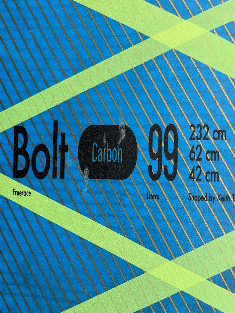 Design.Ultra light heavily unfinished paint on top of pure carbon. Weight saving graphics. Modern Goya Windsurfing look, the Bolt 4 Carbon symbolises the transition into a new era.