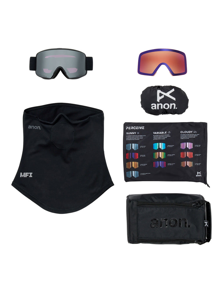 The Anon M6S Goggles feature the same high-end performance as the M6 Goggles in a frame scaled for medium and small faces. They offer a precise helmet-to-goggle fit with the wide field of view and low-profile design of a cylindrical lens. Our innovative Magna-Tech® quick lens-change technology uses powerful rare earth N52 magnets to make lens changes easier than ever. Perceive optics offer high-contrast, terrain-defining clarity. They feature our best anti-fog treatment for crystal-clear vision in a wide range of conditions. Full-perimeter venting plus moisture-wicking, ramped face foam creates a comfortable, form-fitting seal that supports fog-free clarity to anticipate every turn. Magnetic Face Mask Integration (MFI®) provides seamless face mask attachment. Includes a bonus Perceive lens so you're prepared for all conditions, plus an MFI face mask, microfiber goggle bag, and lens compression case.