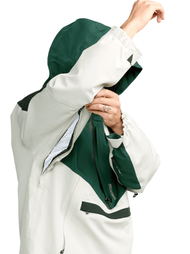 This Shell jacket combines tech features with a loose fit, adjustable hood, and smart storage options. Stay warm and dry with style.